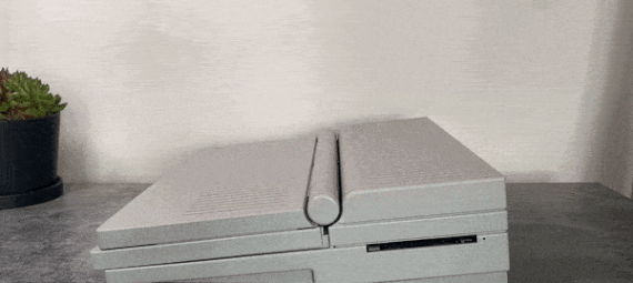 The exterior of the Macintosh Portable is reminiscent of the Macintosh IIc, with its off-white exterior and an elegant row of slits in the top plastic casing. This design language, known as “snow white”, was first used on the IIc back in 1984. Aesthetically speaking the Macintosh Portable is a beautiful embodiment of the Snow White style, with its clean lines and minimalist look. The plastic used in the Macintosh Portable is of the ABS variety (the same used in motorcycle helmets – being very sturdy, rigid, and resistant to impacts. Luckily the plastic has also aged well and is much less brittle than the plastic used in other contemporary laptops. The thick fog-white colored plastic along with the wedge design gives the computer a sculpture-like quality. When standing vertical in its carrying position, the Macintosh Portable could be mistaken for some fine art modernist monolith in an art gallery.